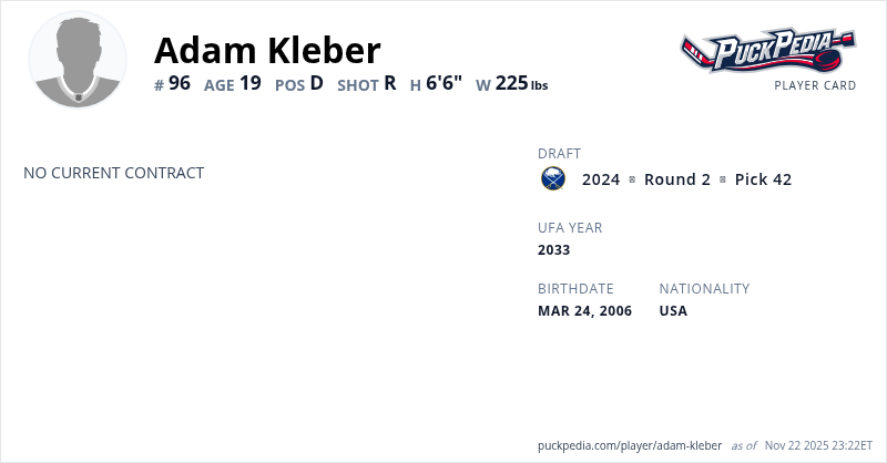 | 2022-23 | 16 | USHL | Lincoln Stars | 56 | 0 | 8 | 8 | 8 | Playoffs | 8 | 0 | 0 | 0 | 0 | ||||||||||||||||