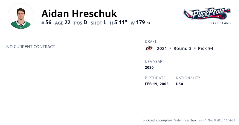 Hreschuk was drafted 94th overall by the Carolina Hurricanes at the 2021 NHL Draft on Saturday.