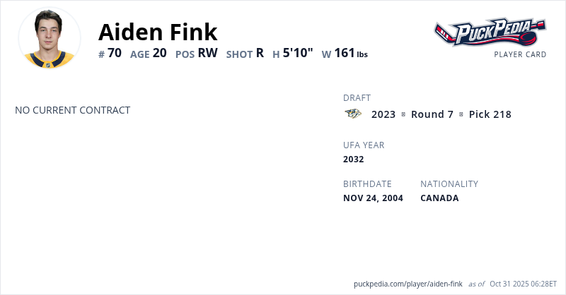 | 2022-23 | 18 | AJHL | Brooks Bandits | 54 | 41 | 56 | 97 | 32 | Playoffs | 15 | 8 | 5 | 13 | 0 | ||||||||||||||||