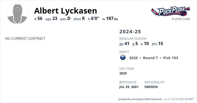 | 2024-25 | 23 | HockeyAllsvenskan | Västerås IK | 41 | 5 | 10 | 15 | 14 | ||||||||||||||||||||||