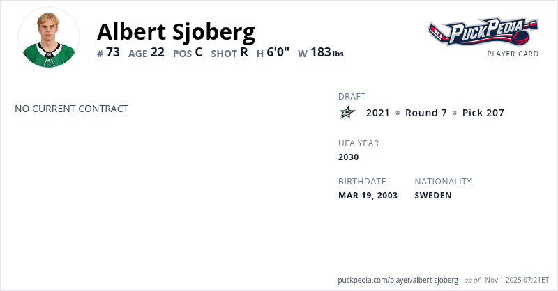 | 2024-25 | 21 | SHL | Malmö Redhawks | 11 | 0 | 1 | 1 | 0 | ||||||||||||||||||||||