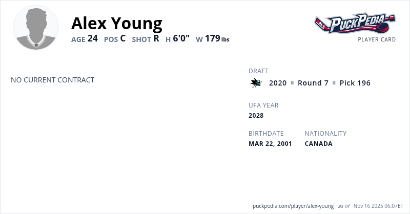 | 2023-24 | 22 | ECHL | Adirondack Thunder | 7 | 2 | 4 | 6 | 8 | Playoffs | 9 | 0 | 0 | 0 | 0 | ||||||||||||||||