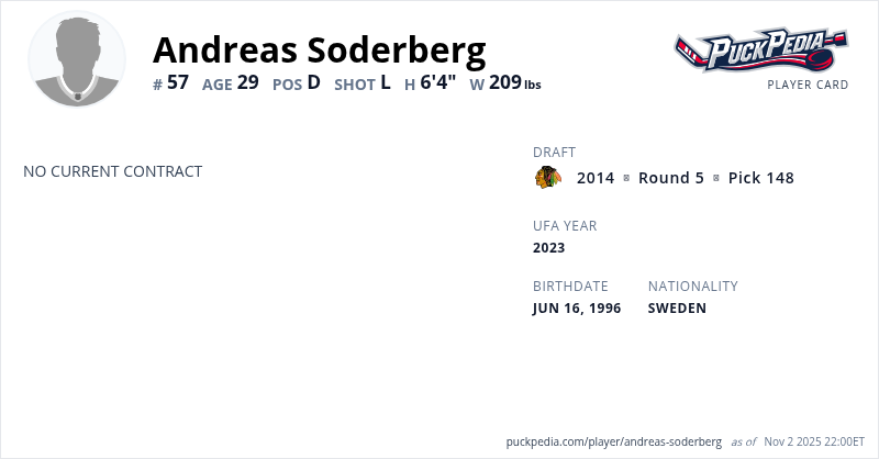 | 2022-23 | 26 | HockeyAllsvenskan | HC Vita Hästen | 51 | 5 | 9 | 14 | 32 | ||||||||||||||||||||||