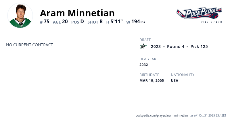 Minnetian was selected 125th overall by the Dallas Stars in the 2023 NHL Entry Draft on Thursday.