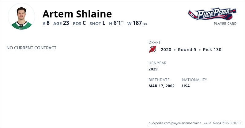 | 2025-26 | 23 | AHL | Texas Stars | 8 | 3 | 0 | 3 | 2 | ||||||||||||||||||||||