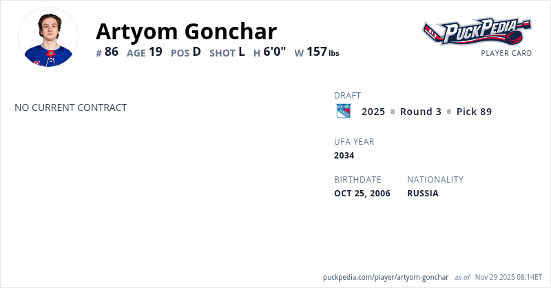 Gonchar was the 89th overall pick by the New York Rangers in the 2025 NHL Entry Draft on Saturday.