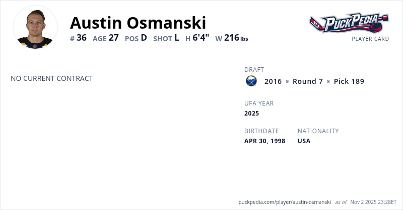 | 2023-24 | 25 | AHL | Utica Comets | 3 | 0 | 0 | 0 | 4 | ||||||||||||||||||||||