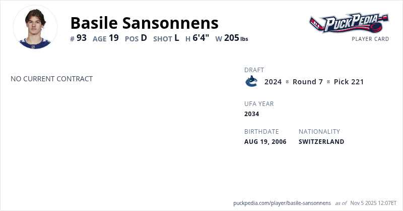 | 2025-26 | 19 | International-Jr | Switzerland U20 (all) | 6 | 0 | 0 | 0 | 4 | ||||||||||||||||||||||