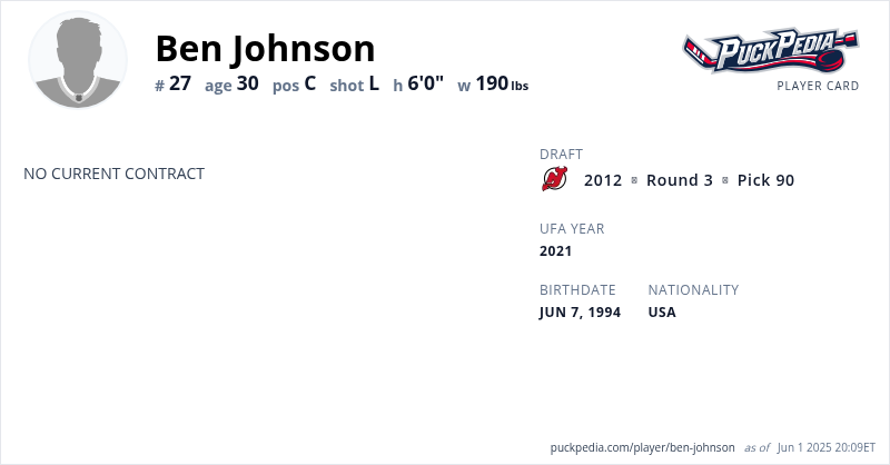 | 2019-20 | 25 | ECHL | Cincinnati Cyclones | 60 | 21 | 31 | 52 | 49 | ||||||||||||||||||||||