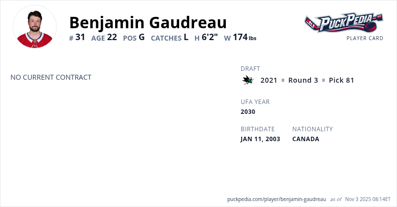 Gaudreau was drafted 81st overall by the San Jose Sharks at the 2021 NHL Draft on Saturday.