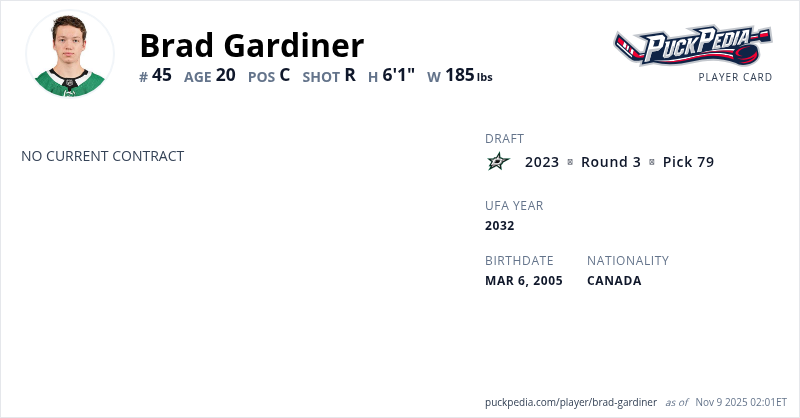 Gardiner was selected 79th overall by the Dallas Stars in the 2023 NHL Entry Draft on Thursday.