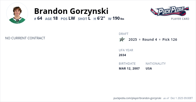 Gorzynski was the 126th overall pick by Dallas in the 2025 NHL Entry Draft on Saturday.