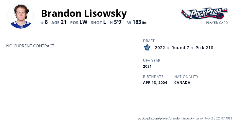 | 2021-22 | 17 | WHL | Saskatoon Blades | 68 | 33 | 25 | 58 | 34 | Playoffs | 5 | 3 | 2 | 5 | 0 | ||||||||||||||||