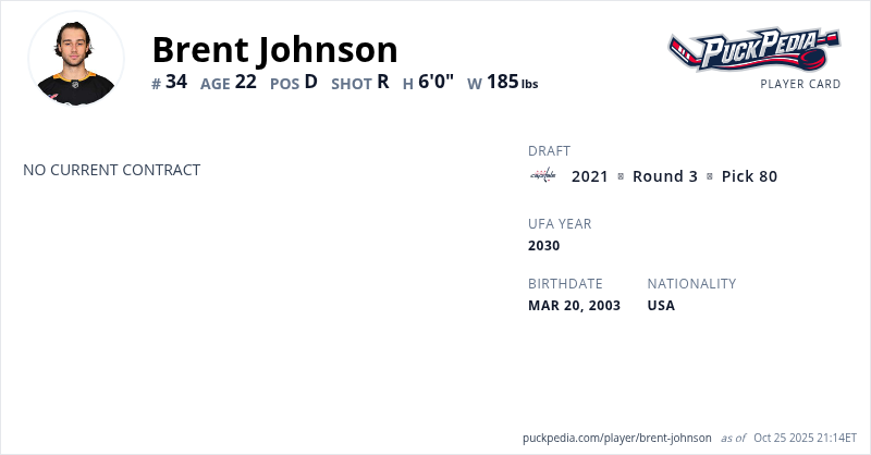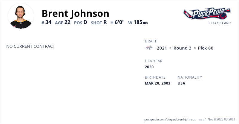 Johnson was drafted 80th overall by the Washington Capitals at the 2021 NHL Draft on Saturday.