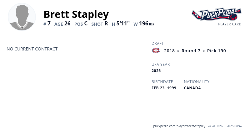 | 2023-24 | 24 | ECHL | Utah Grizzlies | 67 | 24 | 47 | 71 | 36 | ||||||||||||||||||||||
