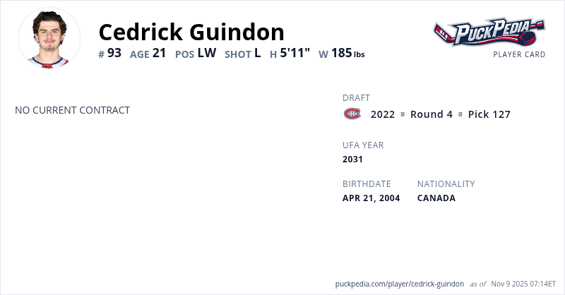 Guindon was selected 127th overall by the Montreal Canadiens in the 2022 NHL Entry Draft on Friday.