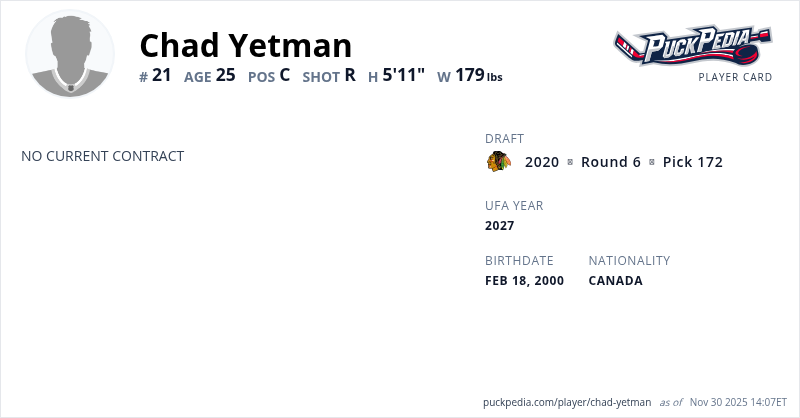 | 2021-22 | 21 | AHL | Rockford IceHogs | 18 | 1 | 3 | 4 | 4 | ||||||||||||||||||||||