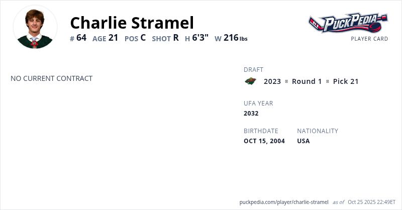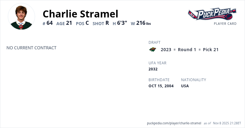 Stramel was selected 21st overall by the Minnesota Wild in the 2023 NHL Entry Draft on Wednesday.
