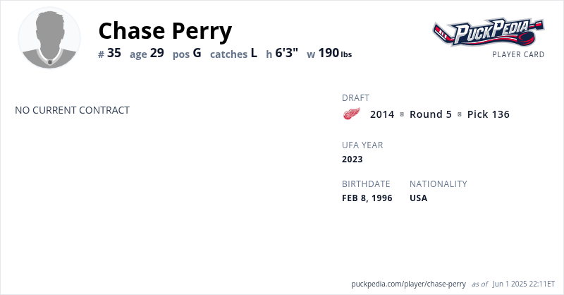 | 2022-23 | 26 | ECHL | Allen Americans | 22 | 3.02 | 0.921 | 0 | Playoffs | 4 | 4.77 | 0.908 | 0 | ||||||||||||||||||