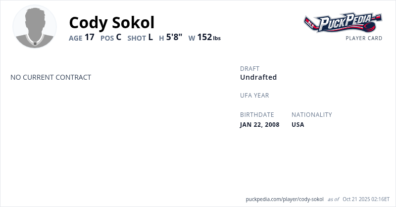 | 2024-25 | 16 | USHL | Green Bay Gamblers | 7 | 1 | 0 | 1 | 0 | Playoffs | 2 | 0 | 0 | 0 | 0 | ||||||||||||||||