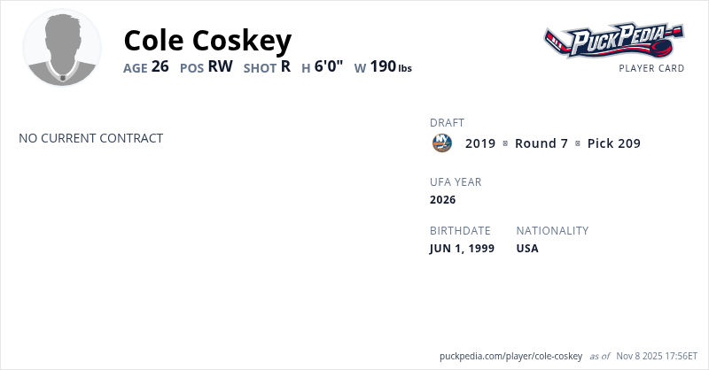 | 2021-22 | 22 | AHL | Bridgeport Islanders | 25 | 0 | 5 | 5 | 8 | ||||||||||||||||||||||