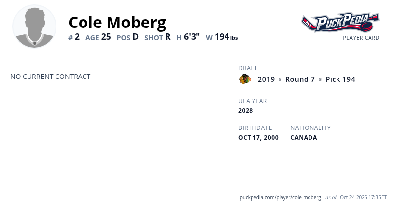 | 2020-21 | 20 | AHL | Rockford IceHogs | 22 | 1 | 4 | 5 | 14 | ||||||||||||||||||||||