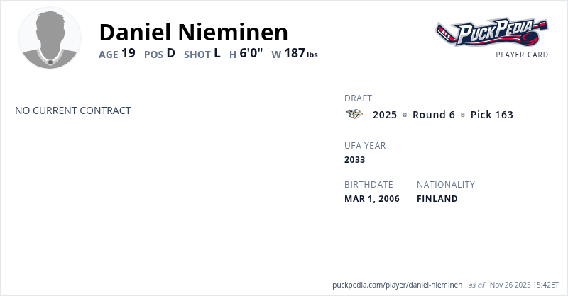 | 2025-26 | 19 | Liiga | Pelicans | 24 | 2 | 3 | 5 | 16 | ||||||||||||||||||||||