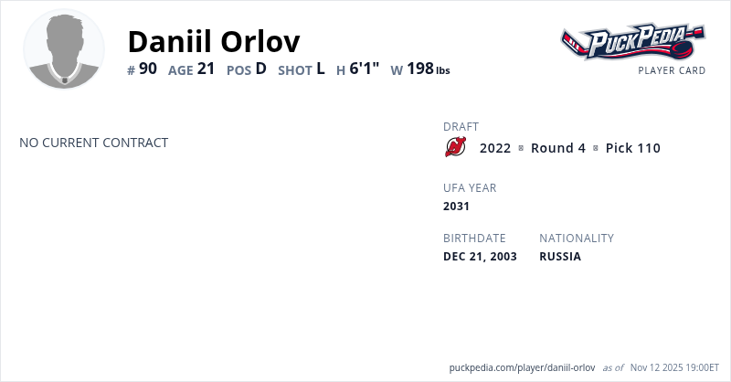 | 2023-24 | 20 | KHL | Spartak Moskva | 60 | 2 | 5 | 7 | 16 | Playoffs | 5 | 0 | 0 | 0 | 0 | ||||||||||||||||