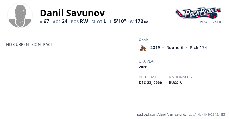| 2019-20 | 19 | International-Jr | Russia U20 (all) | 9 | 0 | 0 | 0 | 2 | ||||||||||||||||||||||