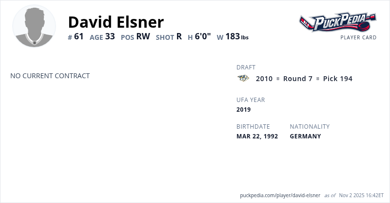 | 2020-21 | 28 | DEL | ERC Ingolstadt | 34 | 5 | 8 | 13 | 2 | Playoffs | 4 | 0 | 0 | 0 | 0 | ||||||||||||||||