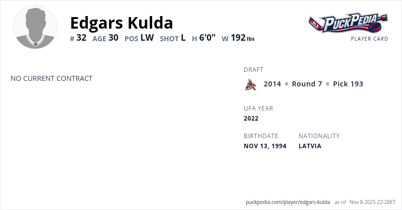 | 2021-22 | 27 | Latvia | Zemgale | 16 | 10 | 20 | 30 | 4 | Playoffs | 10 | 4 | 8 | 12 | 0 | ||||||||||||||||
