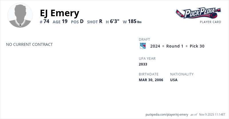 | 2022-23 | 16 | USHL | USNTDP Juniors | 39 | 1 | 8 | 9 | 22 | Playoffs | 3 | 0 | 1 | 1 | 0 | ||||||||||||||||
