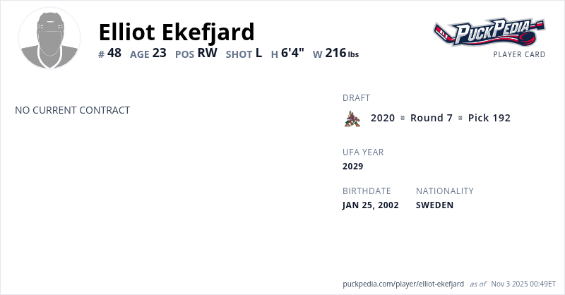 | 2024-25 | 22 | HockeyAllsvenskan | Nybro Vikings IF | 11 | 0 | 0 | 0 | 0 | ||||||||||||||||||||||