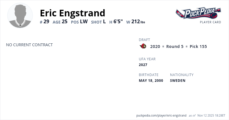 | 2020-21 | 20 | SHL | Malmö Redhawks | 45 | 1 | 4 | 5 | 8 | Playoffs | 2 | 0 | 0 | 0 | 0 | ||||||||||||||||