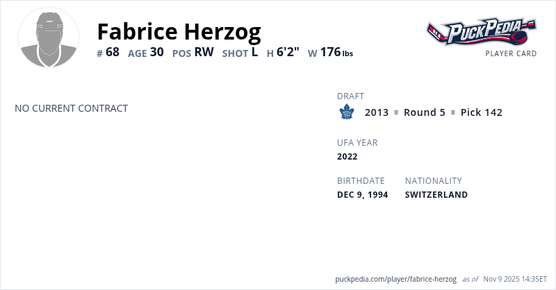 | 2023-24 | 29 | NL | EV Zug | 52 | 18 | 16 | 34 | 14 | Playoffs | 11 | 4 | 5 | 9 | 0 | ||||||||||||||||