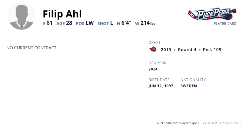 | 2018-19 | 21 | HockeyAllsvenskan | Tingsryds AIF | 42 | 11 | 9 | 20 | 37 | ||||||||||||||||||||||