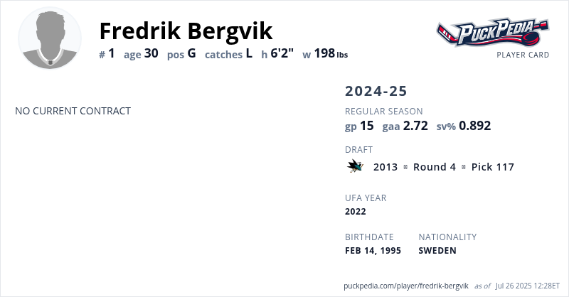 | 2014-15 | 19 | International-Jr | Sweden U20 (all) | 4 | 3.67 | 0.836 | 0 | |||||||||||||||||||||||