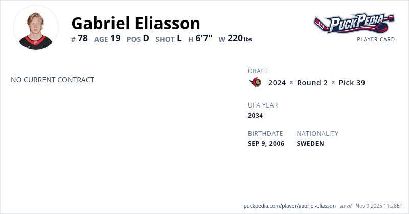 | 2025-26 | 19 | International-Jr | Sweden U20 (all) | 4 | 0 | 0 | 0 | 10 | ||||||||||||||||||||||