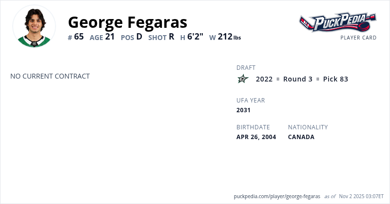 Fegaras was selected 83rd overall by the Dallas Stars in the 2022 NHL Entry Draft on Friday.