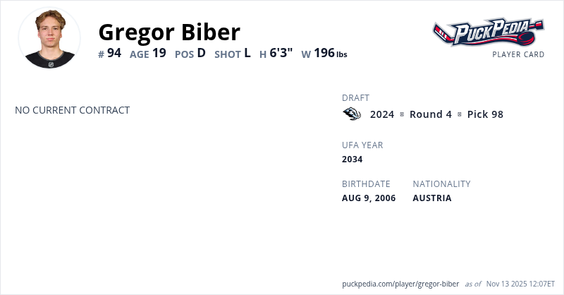 | 2022-23 | 16 | Austria U18i | EC-KAC U18 | 24 | 8 | 21 | 29 | 32 | Playoffs | 10 | 4 | 10 | 14 | 0 | ||||||||||||||||