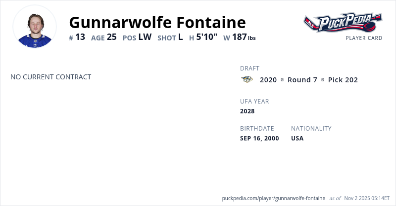 | 2024-25 | 24 | AHL | Iowa Wild | 5 | 0 | 0 | 0 | 0 | ||||||||||||||||||||||