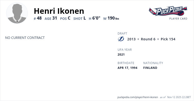 | 2023-24 | 29 | Liiga | Lukko | 57 | 4 | 9 | 13 | 14 | Playoffs | 3 | 0 | 0 | 0 | 0 | ||||||||||||||||