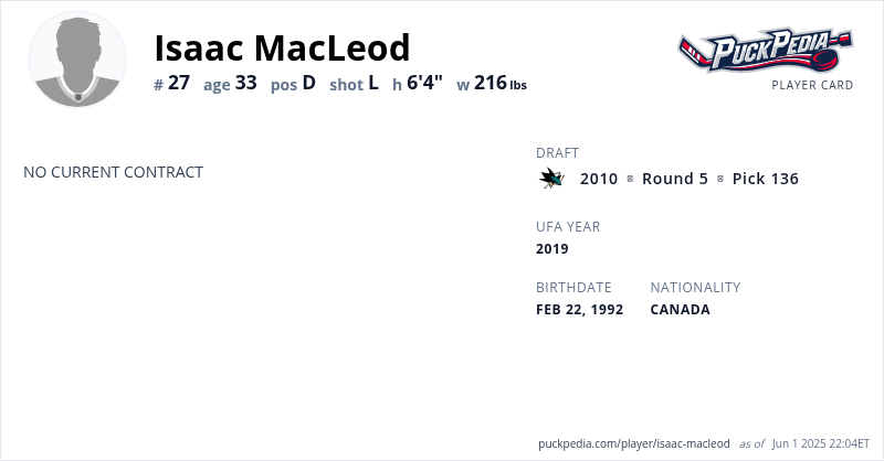 | NHL Totals | 0 | 0 | 0 | 0 | ||||||||||||||||||||||||||