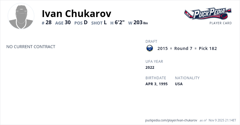 | 2021-22 | 26 | ECHL | Adirondack Thunder | 38 | 2 | 5 | 7 | 18 | ||||||||||||||||||||||