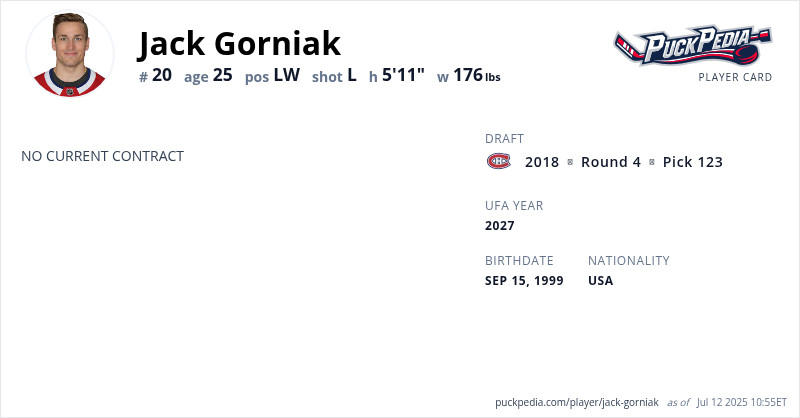 | 2024-25 | 25 | ECHL | Fort Wayne Komets | 70 | 18 | 16 | 34 | 32 | Playoffs | 13 | 2 | 1 | 3 | 0 | ||||||||||||||||