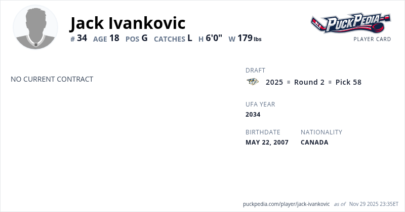 Ivankovic was the 58th overall pick by Nashville in the 2025 NHL Entry Draft on Saturday.