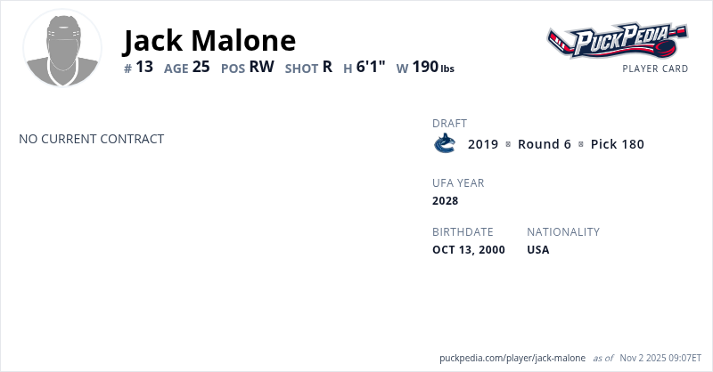 | 2025-26 | 25 | AHL | Utica Comets | 8 | 0 | 0 | 0 | 2 | ||||||||||||||||||||||