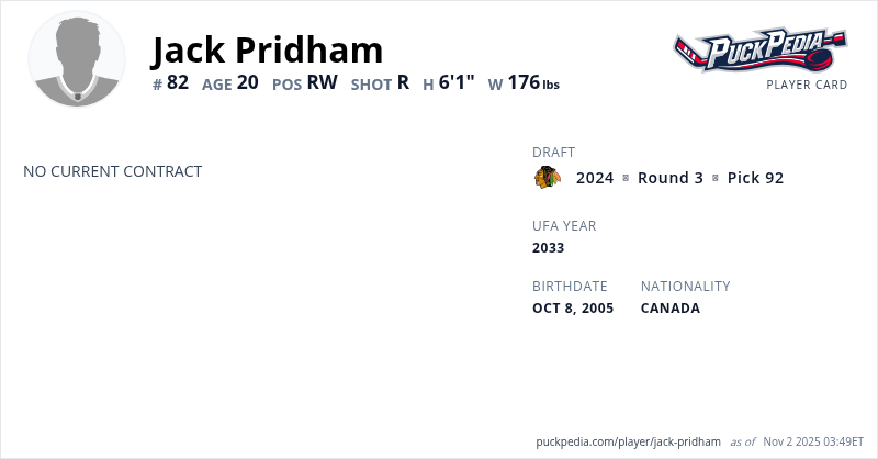 Pridham will not be joining Boston University this season and will instead return to OHL Kitchener if he can't make the NHL roster, Ben Pope of the Chicago Sun-Times reports Tuesday.