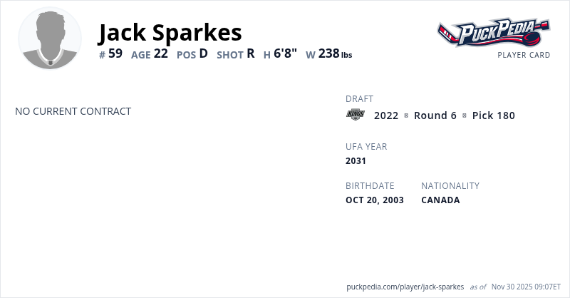 Sparkes was selected 180th overall by the Los Angeles Kings in the 2022 NHL Entry Draft on Friday.