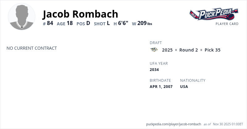| 2023-24 | 16 | USHL | Lincoln Stars | 59 | 3 | 6 | 9 | 14 | Playoffs | 5 | 0 | 2 | 2 | 0 | ||||||||||||||||